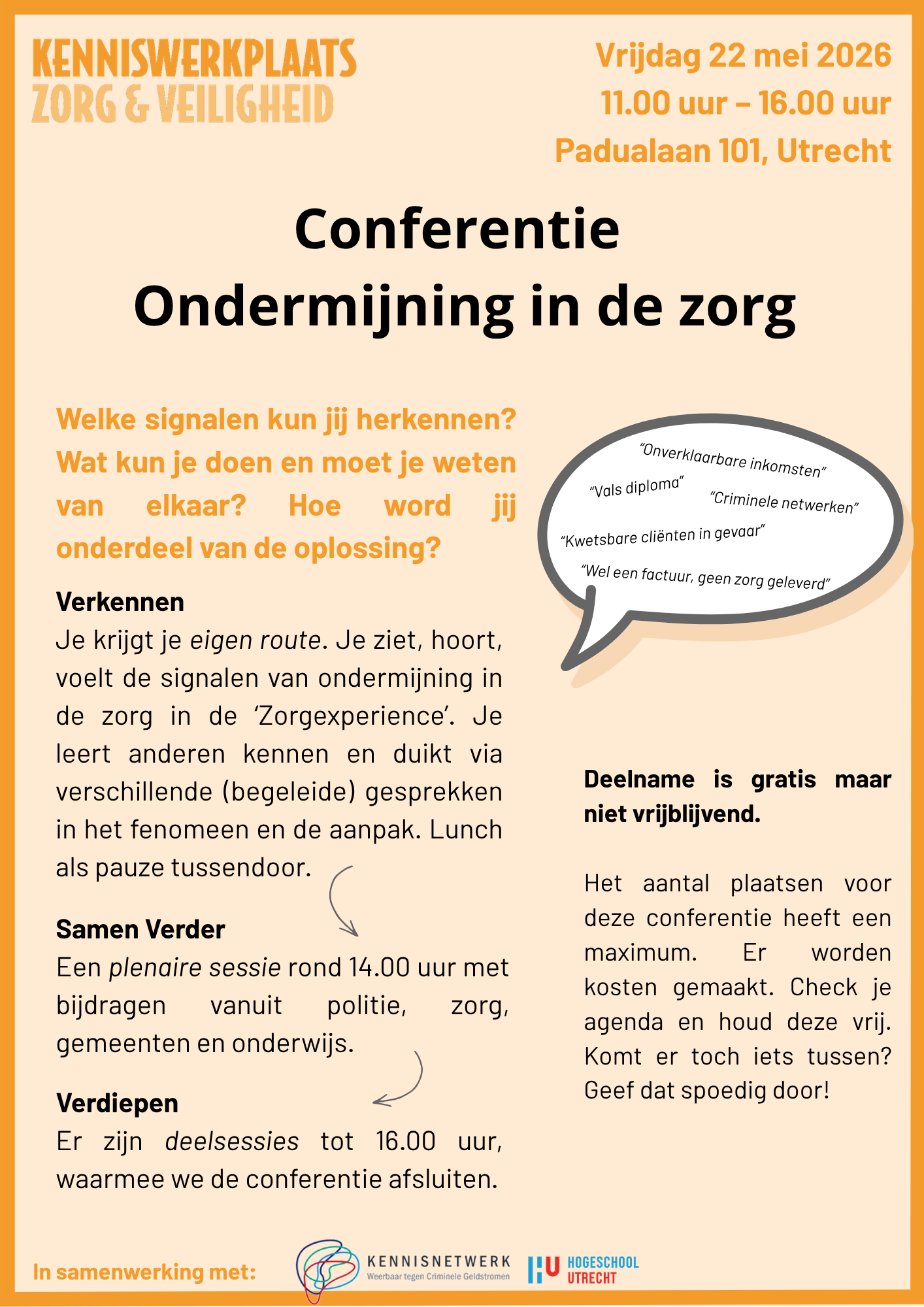 Tijdens deze conferentie kijken we daarom naar het fenomeen en de aanpak, vanuit de perspectieven zorg, welzijn, politie, toezicht, openbaar bestuur, poortwachters en onderwijs.